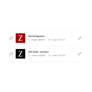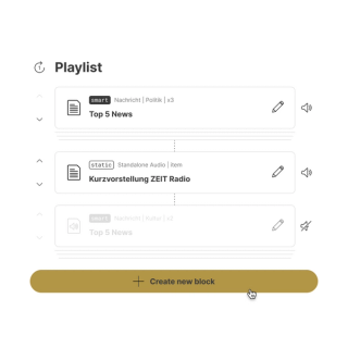 Over the years Speechbert has become a large repository of all-things-audio at ZEIT. To make this content available to the outside world, we developed a dynamic playlist editor. The editor makes it possible for the ZEIT editorial team to create audio feeds that contain a mix of text-to-speech and regular, human-read audio like podcasts or advertisements. This variety is indexed via Speechbert, enabling a range of innovative storytelling formats.
